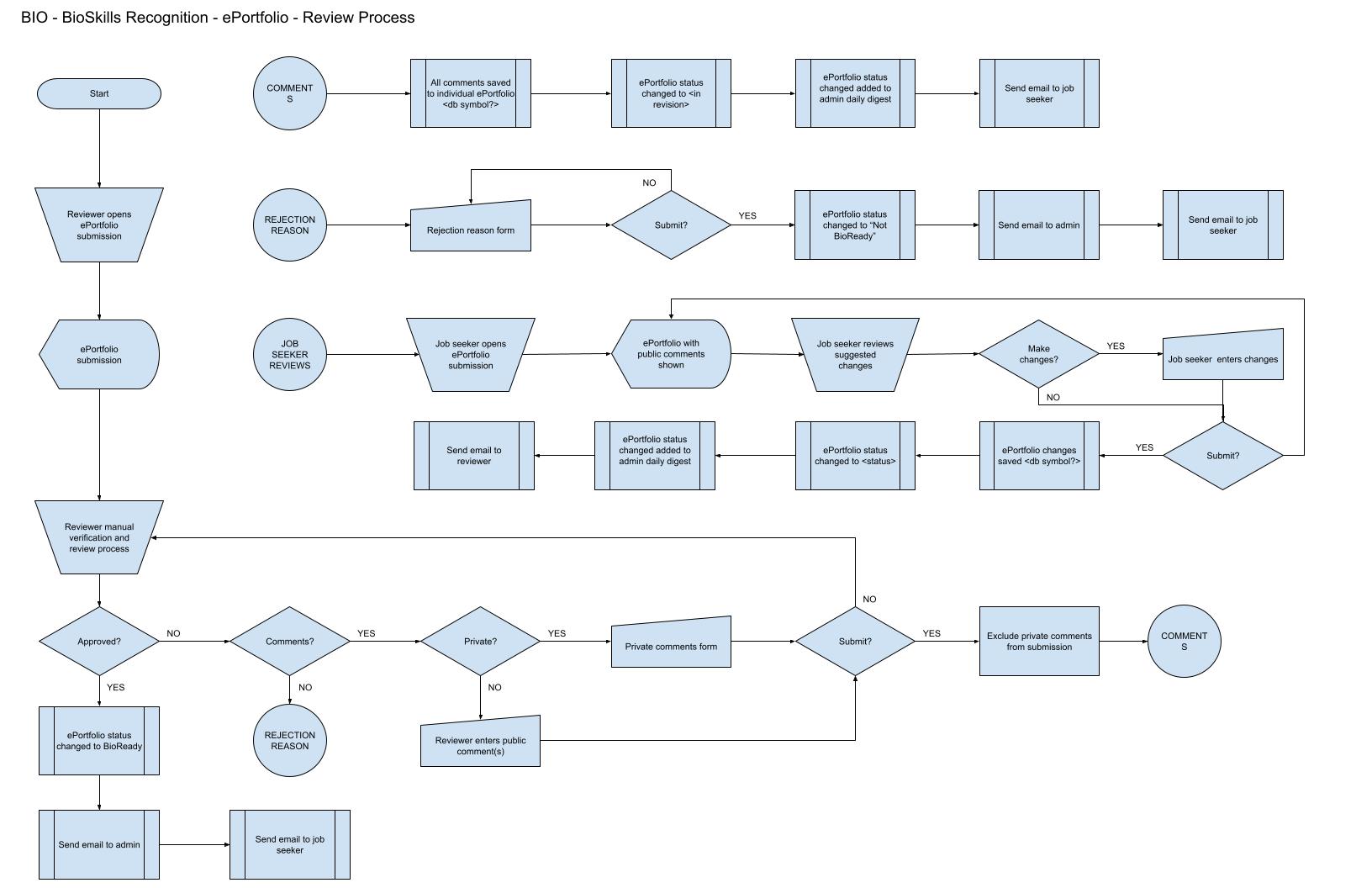 An example from the series of flowcharts created for the BioTalent Canada project.