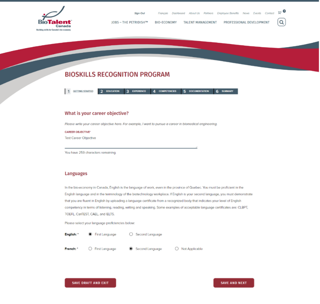Given the scope of MEASURE, our focus was on a key function of BioTalent’s new platform: the BioSkills Recognition Program (BRP). The BRP was designed to streamline the process for newcomer job seekers in the biotechnology sector to achieve and showcase “BioReady” status, addressing the challenge that no definitive body existed to translate foreign education into comparable Canadian outcomes. BioTalent Canada was aptly poised to fill this gap.
